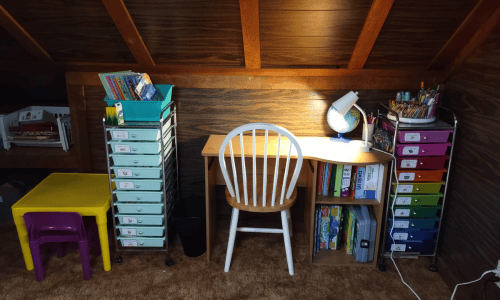 When it’s time for homeschool, you sit down with your kids and actually enjoy teaching them. The books are where they belong and the supplies are easy to find. Your homeschool space works with you instead of against you.
