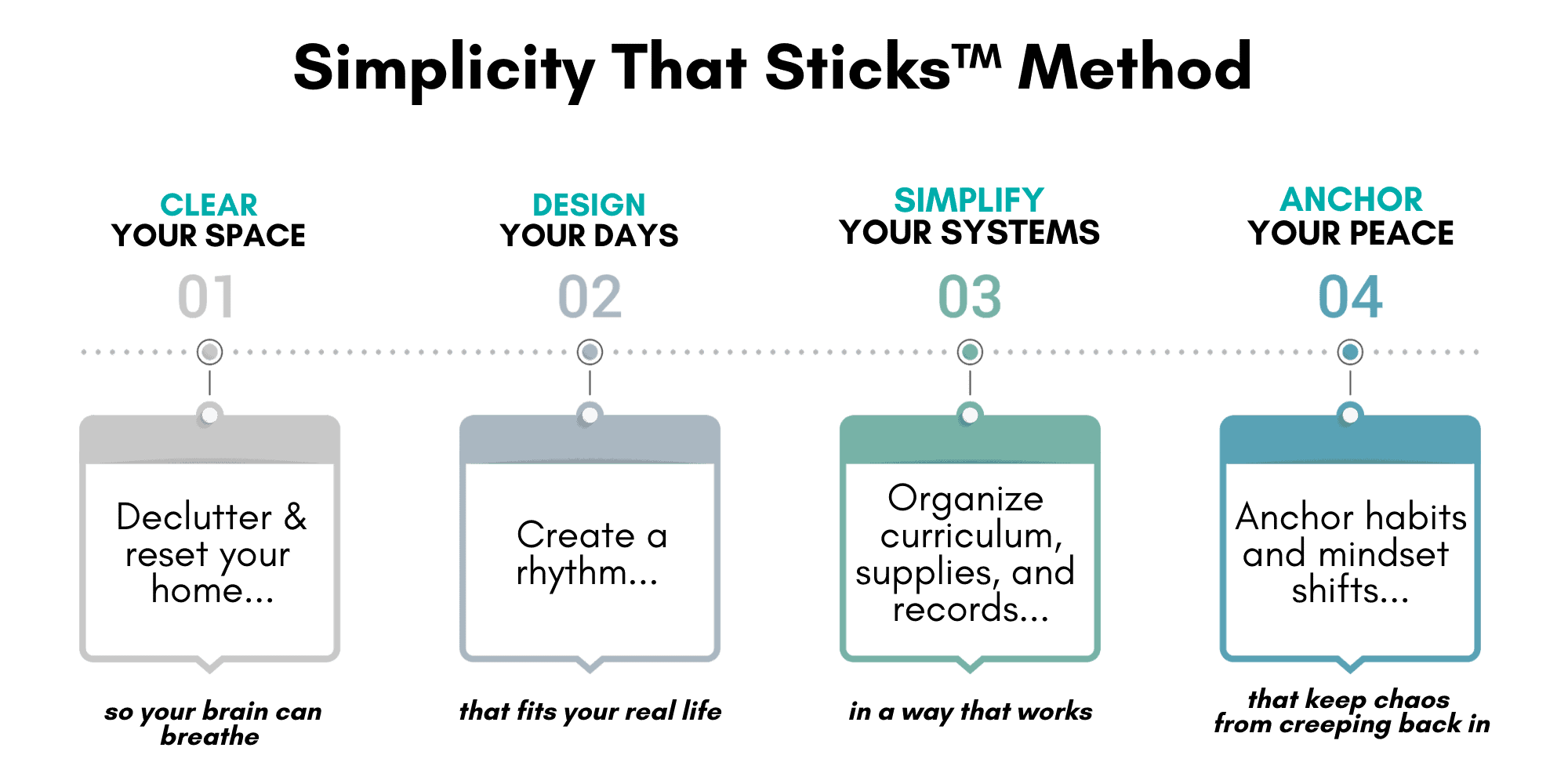 That journey eventually became the framework I now teach other moms: The Simplicity That Sticks™ Method.