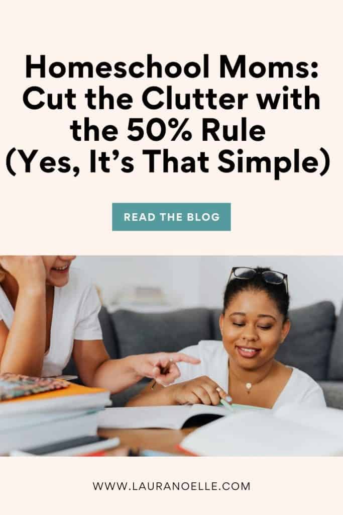 But here’s the thing: even in those tougher areas, the 50% Method still works, it just takes more intention. For example, I went through all our homeschool curriculum recently, and I really pushed myself to ask: “Am I actually going to use this again for my second child, or is this just a maybe?”
